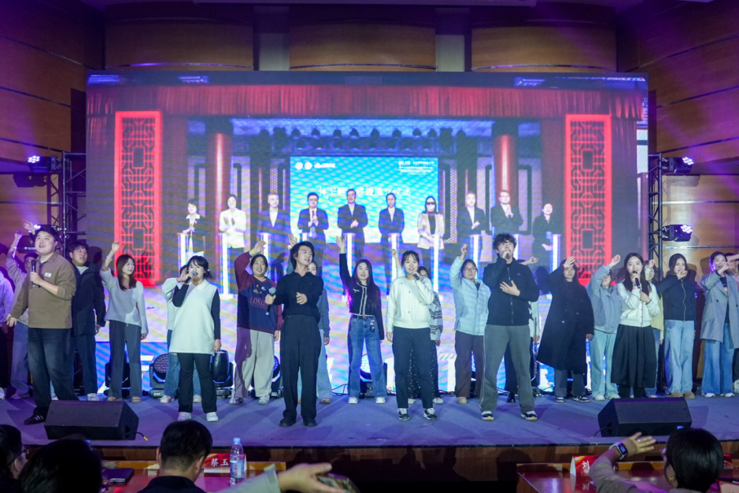 随后,由张烜诚、陆昱颖等七位师生带来的歌曲《我相信》响彻会场。悠扬的长笛声与激昂的歌声交织,背景屏幕上滚动播放着师生们亲手写下的“2026新年心语”:“愿科研再攀高峰”“期待在健康中国的道路上留下我们的足迹”“与学院共成长,与时代同奋进”……真挚的文字与动人的旋律交融,将全场气氛推向最高潮,表达了全院师生对2026年的美好憧憬与坚定信心。