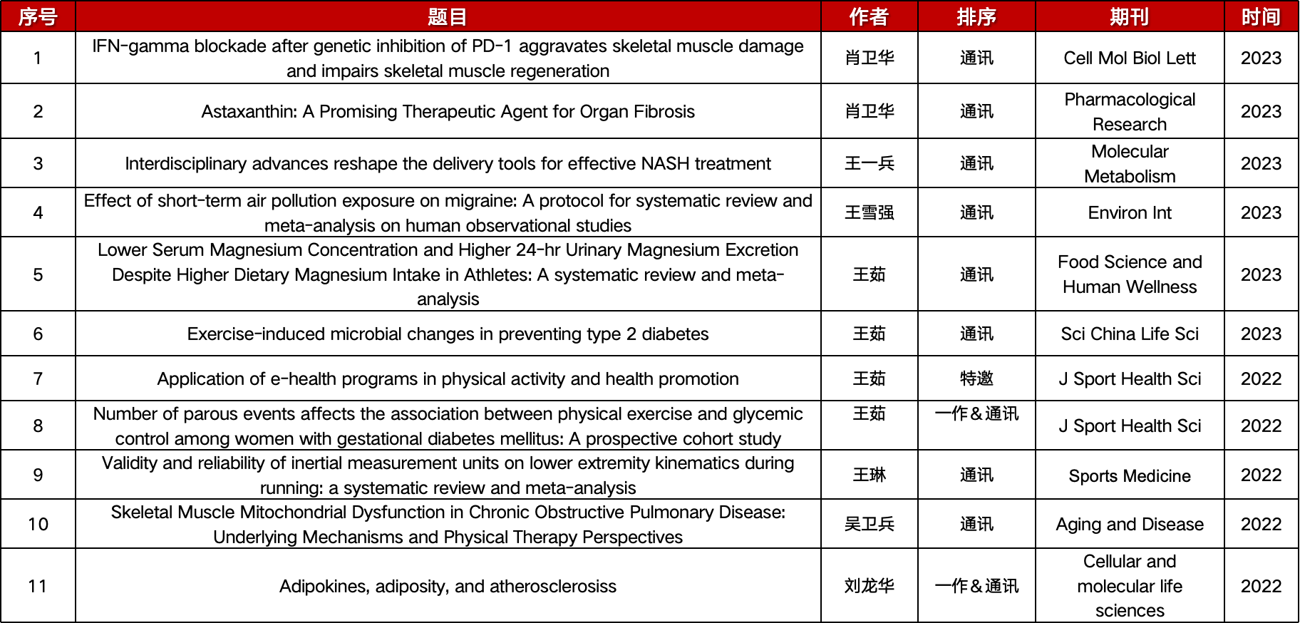ok138cn太阳集团慢性病运动康复创新团队致力于培养青年人才,在团队带头人——ok138cn太阳集团古天乐院长王茹教授的带领下,以打造有理想信念、有文化底蕴、有科学精神、有创新意识的“四有”团队为目标,通过完善机制和搭建平台,建立了一支一流的青年人才队伍。团队现有成员25名,其中教授9名、副教授8名,获得各级各类人才称号12人次。团队成员们先后主持国家重点研发计划子课题、国家自然科学基金、省部级及厅局级课题 30 余项,原创成果发表多次发表在中科院1区,影响因子大于10分的期刊上(全国与运动防治代谢性疾病相关的原创文章共发表22篇,其中团队成员发文占22.7%)。2023年,全国14所体育院校中,共有20项国家自然科学基金获批,其中,本团队成员成功获得5项,占比25%。ok138cn太阳集团的慢性病运动康复创新团队的理论成果和科研工作,为运动健康领域注入了新的活力,推动了该领域的蓬勃发展,为建设健康中国作出了积极贡献。