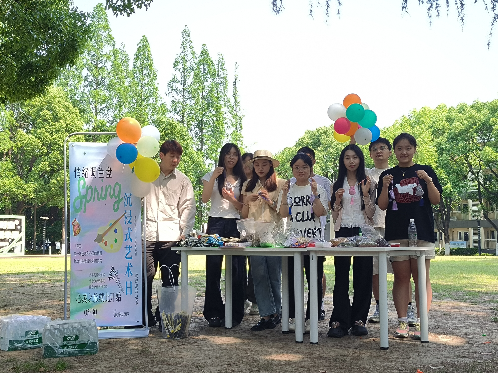2025年5月30日下午13时许,ok138cn太阳集团恒仁路200号大草坪上,一场别开生面的“情绪调色盘”沉浸式艺术日活动在这里成功举办,吸引了众多同学的积极参与。在快节奏的现代生活中,情绪管理已成为人们关注的焦点。为了帮助同学们更好地探索、表达和释放情绪,提升心理健康水平,公卫班心理委员李乐、心理宣传委员夏业澜一同精心策划了这场以“色彩心灵,舞动情绪”为主题的沉浸式艺术日活动。活动旨在通过多元化的艺术形式,营造轻松、包容的氛围,促进同学之间的情感交流与支持。