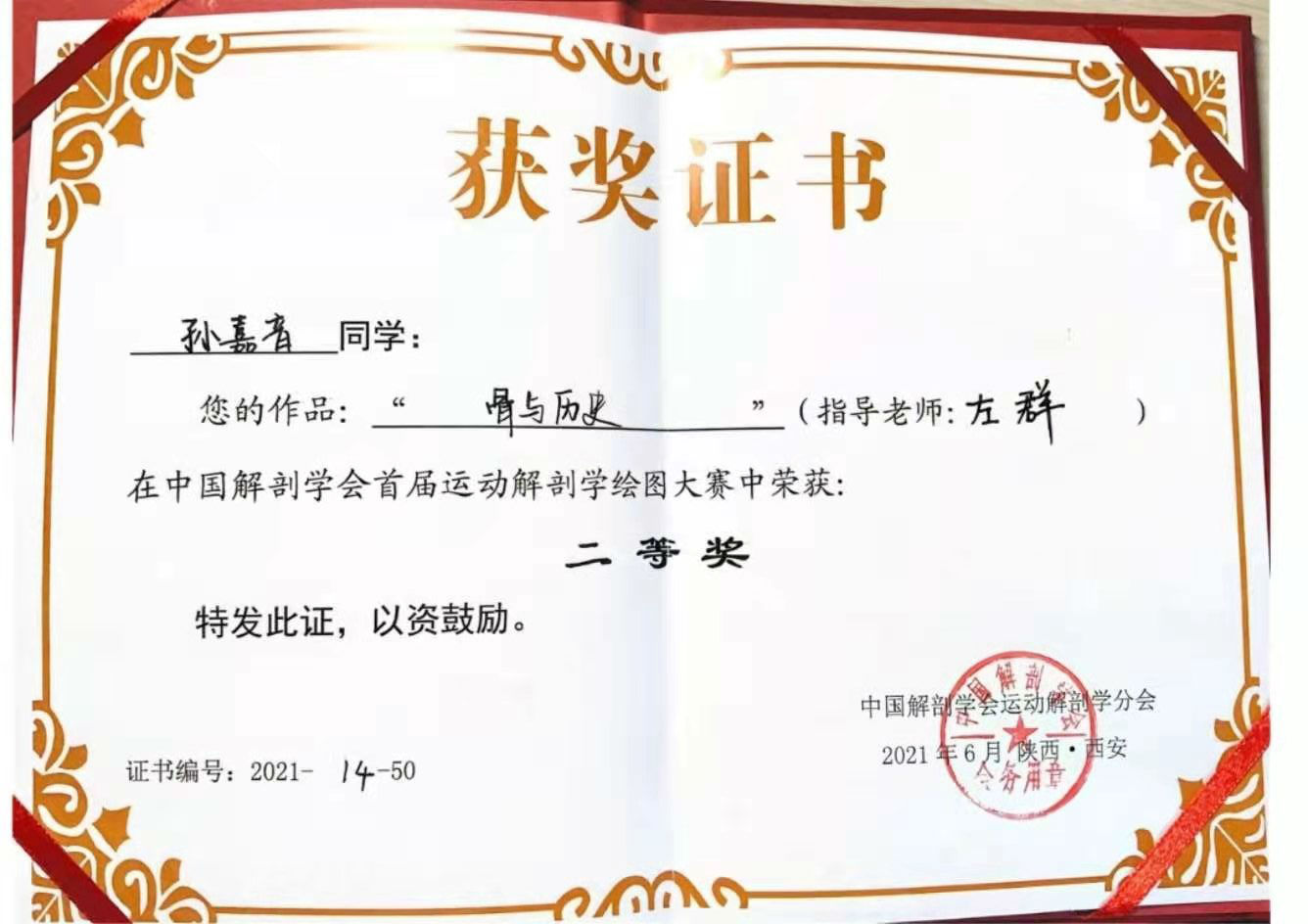 运动科学学院本科生孙嘉音和周芮在首届运动解剖学绘图大赛中表现优异,她们参赛的创意作品分别获得二等奖和三等奖。