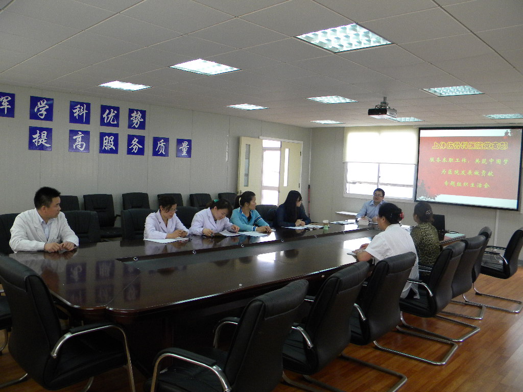 随后,伤骨科医院党支部举行了成立后的第一次党支部专题组织生活会,全院党员和业务骨干以“中国梦—我们的工作,推动医院科学发展”为主题,谈了自己在本职工作岗位上的工作体会,以及讨论了如何发挥自己的主观能动性,为医院和学校发展做贡献。伤骨科医院全体党员及业务骨干表示,学校成立伤骨科医院党支部必将有力促进伤骨科医院发展,我们将利用伤骨科医院面临的各种有利契机,努力工作,尽职尽责,为医院发展做出更大贡献。