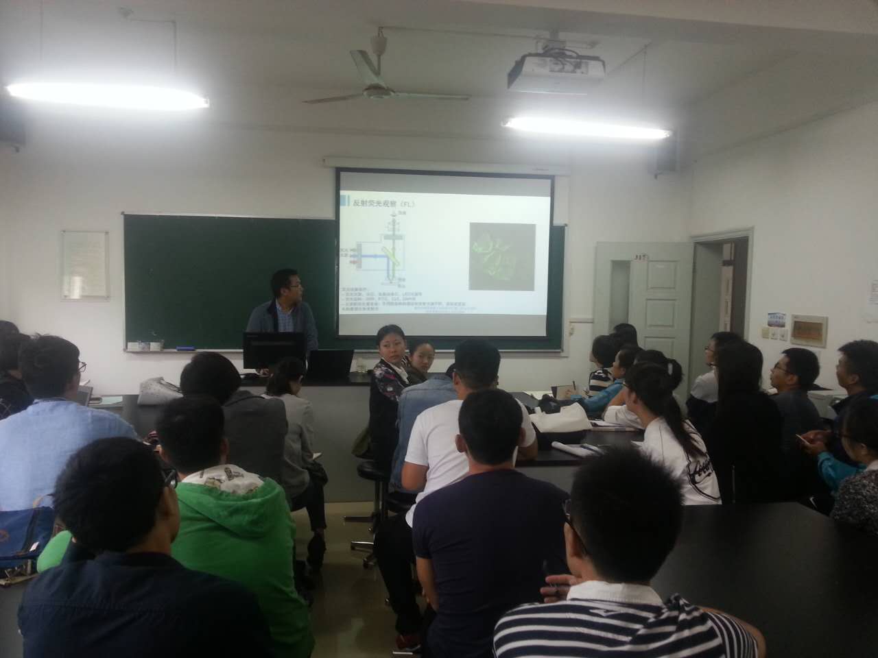 自成立之日起,实验中心定期请厂家及工程师对学生进行仪器使用讲授及设备维护等项目。近正值硕士、博士新生入学阶段,举行显微镜仪器使用培训及维护,一方面对让新生对实验中心进行了解,对仪器的使用及操作进行培训和规范。