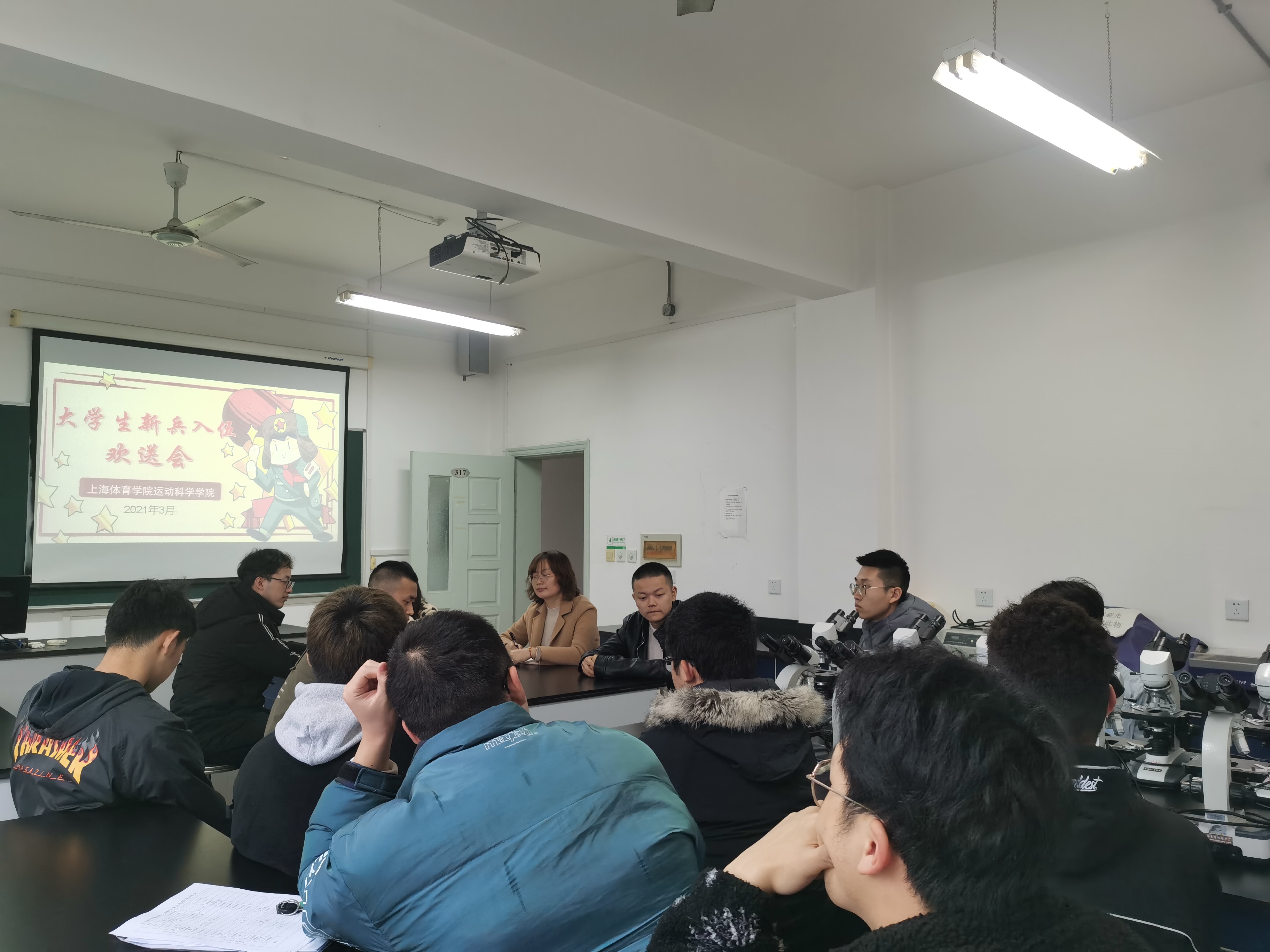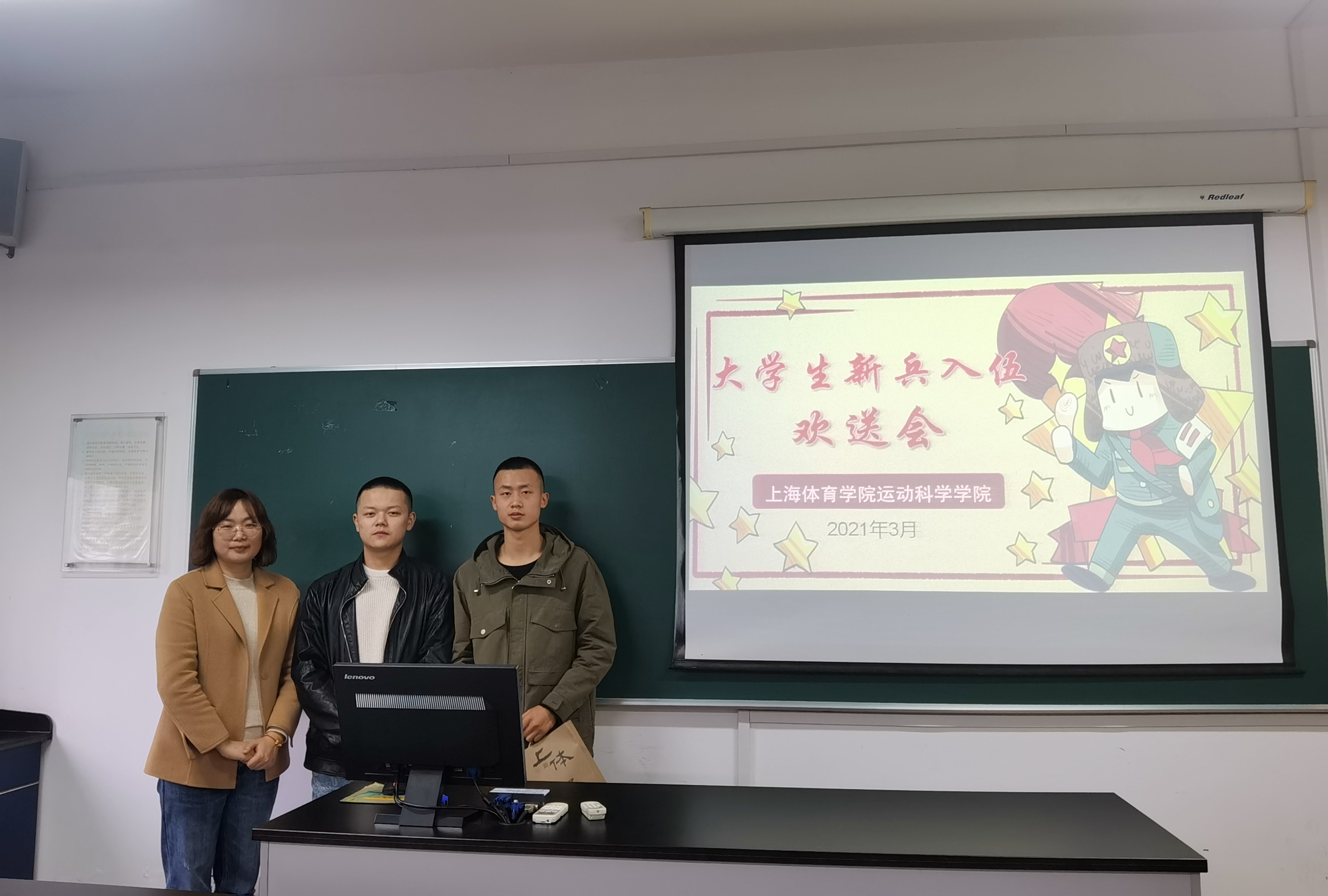 3月11日上午,运动科学学院2021年春季预定新兵入伍欢送会在科研楼317举行。学院党委副书记陈莉莉、本科生辅导员汤含雨、雷越出席会议,即将入伍的预定新兵胡斌、杨向东两位同学,以及部分学生代表共约16人参加了此次欢送会。会议由本科生辅导员雷越主持。