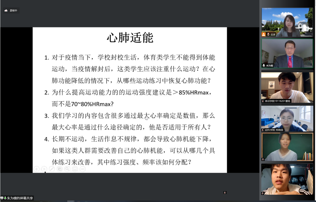 4月25日晚,运动科学学院主办、体适能教学团队承办的国家一流本科课程建设活动——大咖面对面聊侃“健康体适能”活动顺利举行。本次活动有幸邀请到美国伊利诺依大学香槟分校终身教授、美国运动科学院院士、美国体育测量与评价终身成就奖得主——朱为模教授作为主讲嘉宾,有来自上海体育学院、上海师范大学、同济大学、复旦大学、哈尔滨师范大学、哈尔滨体育学院、华侨大学和宁夏大学等十余所院校的五百多名师生参与,活动由上体运科学院庄洁教授主持。
