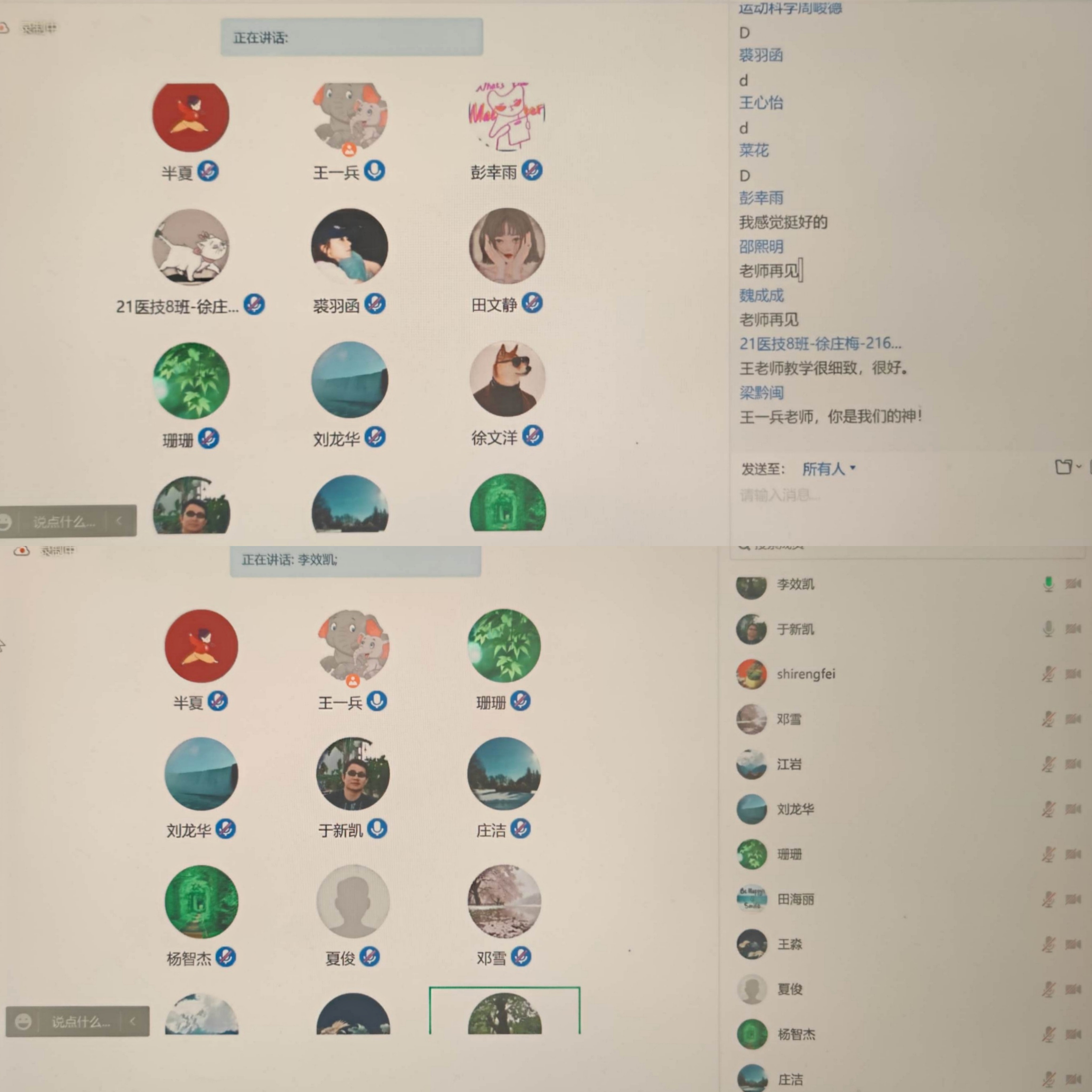 研讨中,运科督导组的史仍飞老师和庄洁老师认为王一兵老师课堂准备充分,建议可以结合体育运动的相关内容进行课程讲解,充分利用学习通上抢答、分组等功能,增加师生互动性。其他老师表示观摩后深受启发,表示要注意线下和线上教学的巨大差异性,多利用已有的线上平台功能,加强师生互动,提高课程教学的有效性。