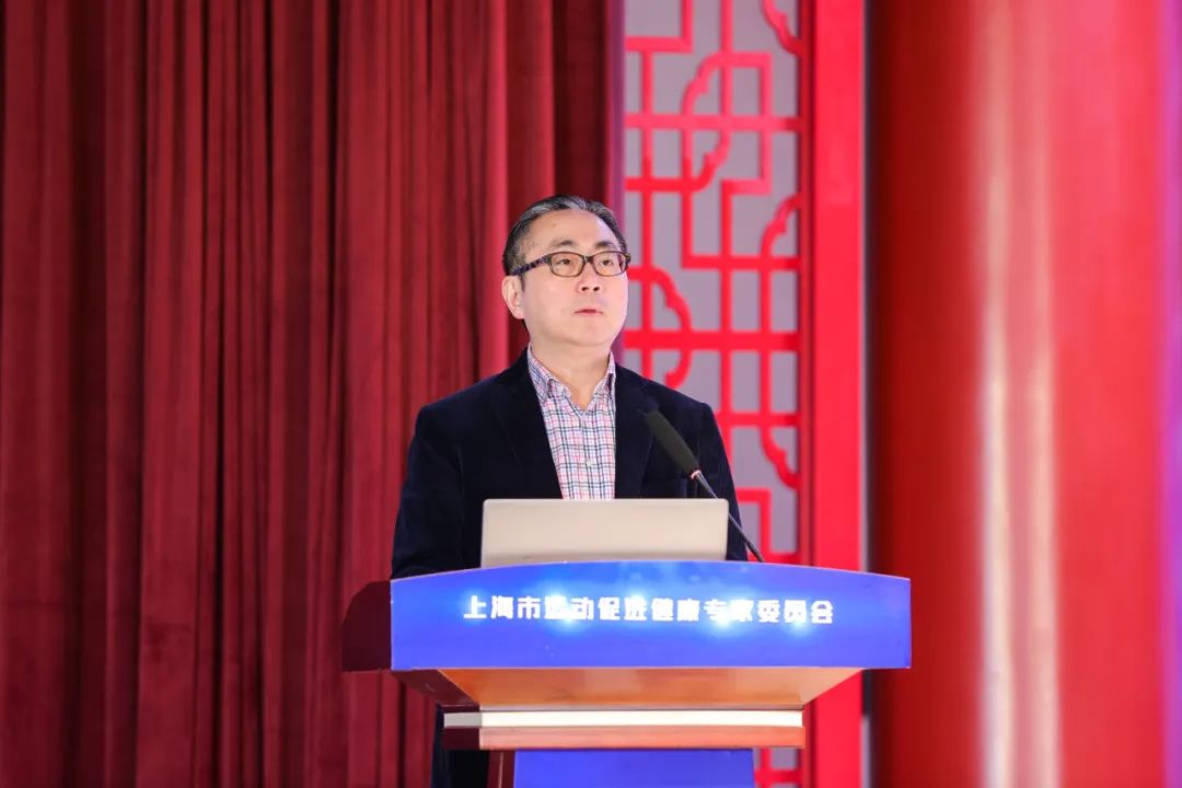 上海市运动促进健康专家委员会主任委员、首席专家、上海体育学院院长陈佩杰向大会介绍了上海市运动促进健康专家委员会筹建情况和工作计划。他指出,成立由运动健康领域专家组成的上海市运动促进健康专家委员会,贯彻落实《“健康中国2030”规划纲要》《上海市运动促进健康三年行动计划(2021-2023年)等文件,主动服务对接“全民健身”和“健康中国”两大国家战略,旨在发挥作为体育类高等院校的高水平智库作用,构建上海特色的运动促进健康新模式,助力打造“人人会健身”的全民健身活力城市。陈佩杰院长详细介绍了专委会的组织架构、人员组成、职责任务,梳理了专委会未来五年的重点工作方向,表示将在全面加强运动促进健康科学研究、为政府部门提供高质量决策咨询服务、开展面向群众的运动促进健康科普宣传、搭建运动促进健康学术与思想交流平台、探索运动促进健康专业人才联合培养等五个方向上同步发力,为推动上海全民健身与全民健康事业的融合发展注入强大动力。