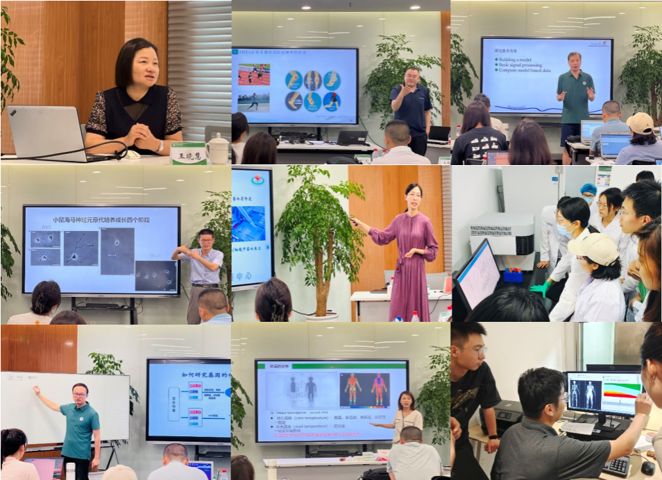 为期三天的集中授课环节,王晓慧、王琳、伍勰、王一兵、石月、刘龙华、郑鑫焱、黄睿八位校内教师围绕运动健康科学领域实验技术的基本原理与方法,包括实验设计、仪器使用、基本技能和综合应用等多维度进行实践教学。