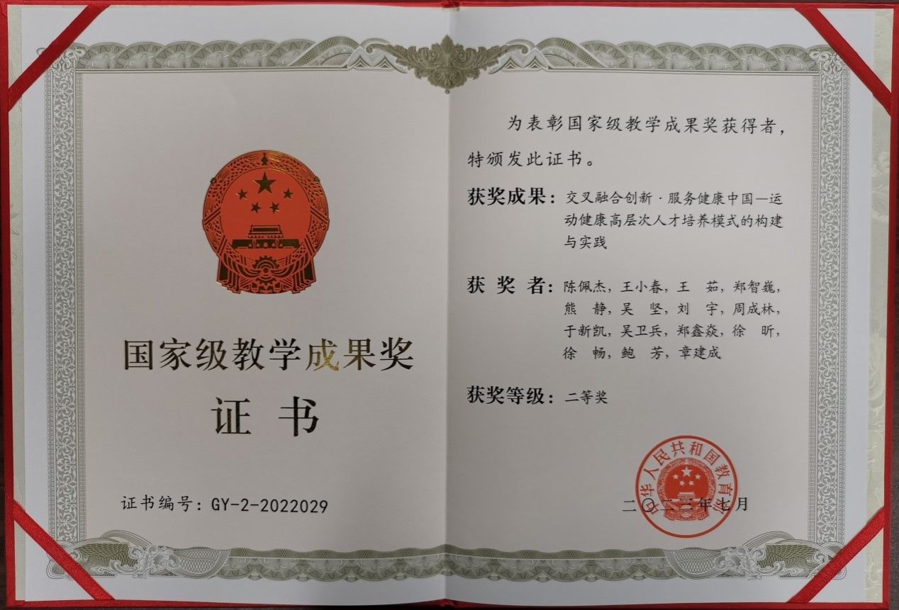 近日,教育部颁发了国家级教学成果奖证书和奖章,ok138cn太阳集团作为第一完成单位,共获国家级教学成果奖2项。其中我校陈佩杰教授牵头完成的《交叉融合创新•服务健康中国—运动健康高层次人才培养模式的构建与实践》成果荣获高等教育(研究生)国家级教学成果奖二等奖,这是我校首次获得该奖项。