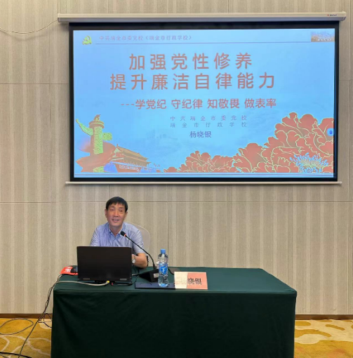 中共瑞金市委党校原副校长杨晓银以《加强党性修养,提升廉洁自律能力》为题为学员们讲授专题党课,为了帮助学员们更好地理解和贯彻《中国共产党纪律处分条例》,他从党的二十大报告的核心要点入手,结合实际案例,围绕政治纪律、组织纪律、廉洁纪律、群众纪律、工作纪律和生活纪律等六个方面为学员们深入解读了加强党性修养和提升廉洁自律能力的重要性。在授课过程中,他鼓励学员们将党纪学习教育内化于心、外化于行,强化自我约束,真正践行“学党纪、守纪律、知敬畏、做表率”的崇高理念,凝聚干事创业的精气神,在新时代新征程上作出新贡献。