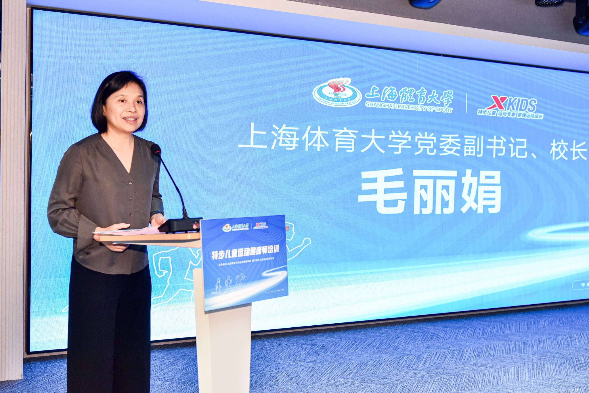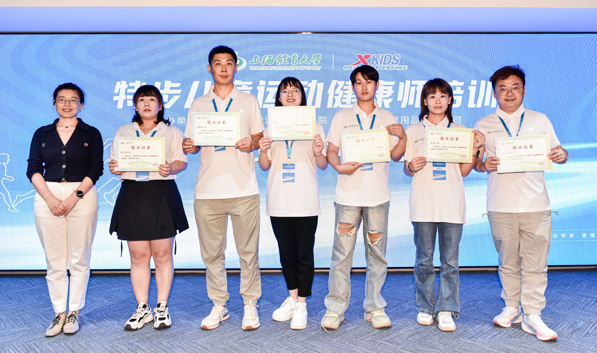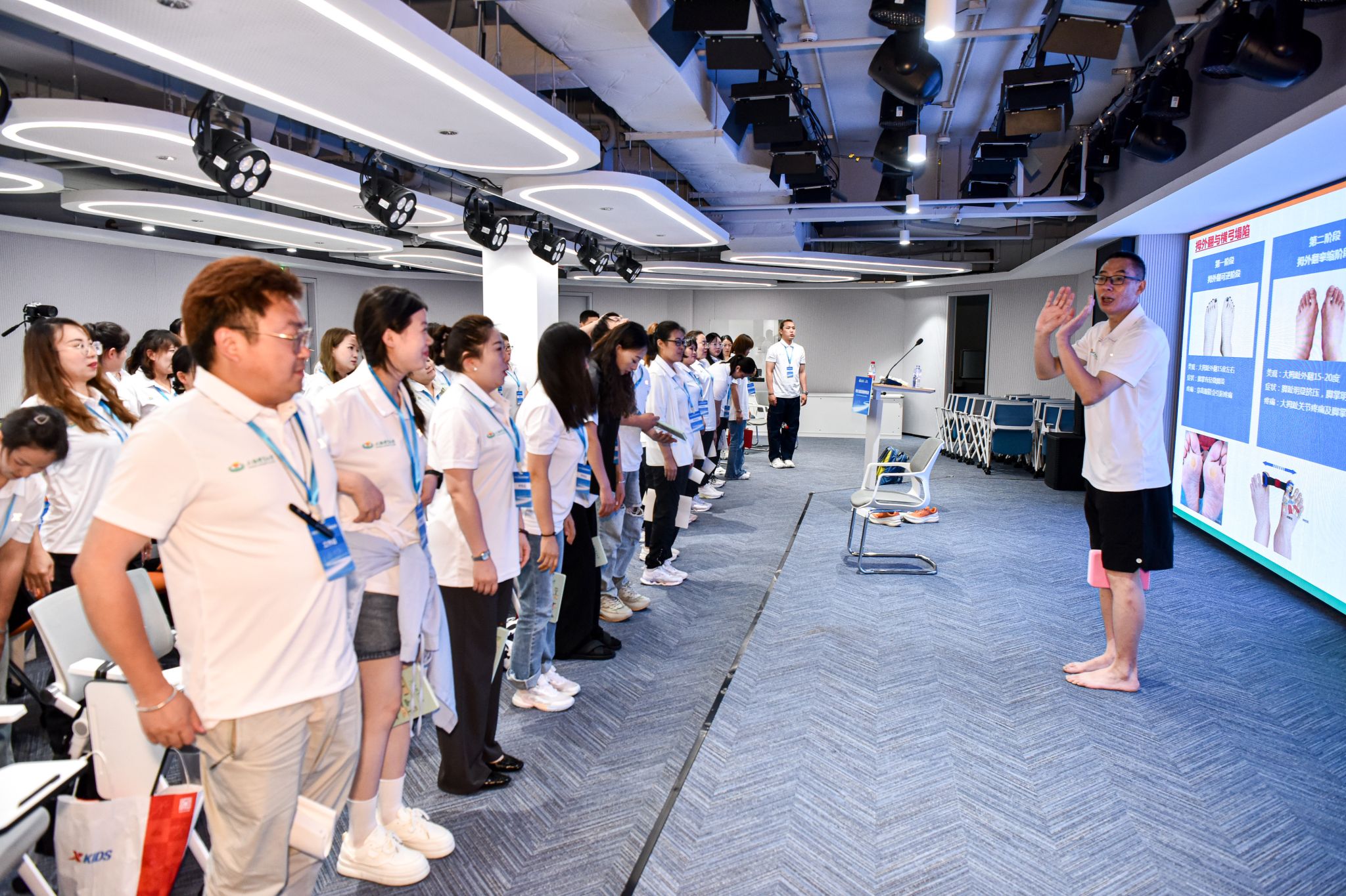 ok138cn太阳集团党委副书记、校长毛丽娟,特步集团副总裁郑蔚华、戴斌,ok138cn太阳集团学(研)工部部长王丽娜、ok138cn太阳集团古天乐党政领导班子等相关人员出席了本次开班仪式。本次培训班由我校ok138cn太阳集团古天乐、经济管理学院、心理学院相关专家组成讲师团,围绕青少年体态和足部发育特点、青少年运动系统生长发育特征、青少年健康运动干预、青少年体育用品消费需求等内容,为培训班学员开展系统培训。经过两天的理论及实践培训,首批培训班学员顺利结业。