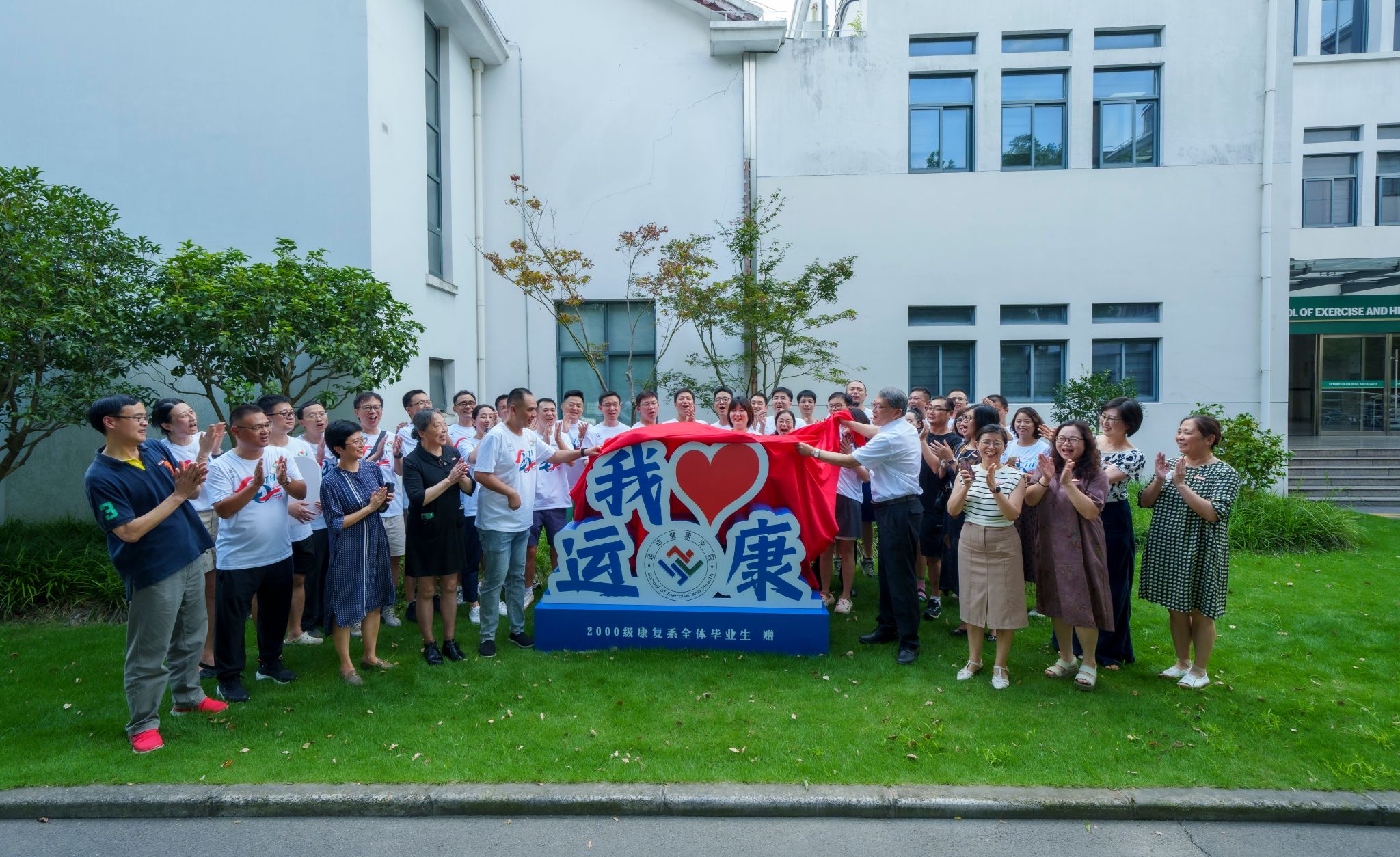 康复系2000级全体毕业生向学校捐赠了“我爱运康”立牌,承载着校友们对母校的深厚情感,设立于ok138cn太阳集团古天乐运动健身科学馆门口,成为打卡地标。在热烈的掌声和期待的目光中,ok138cn太阳集团原校长陈佩杰教授和2000级校友代表谢辉共同为捐赠立牌揭幕,运康学院党政领导班子、原康复系授课教师和辅导员等出席见证。