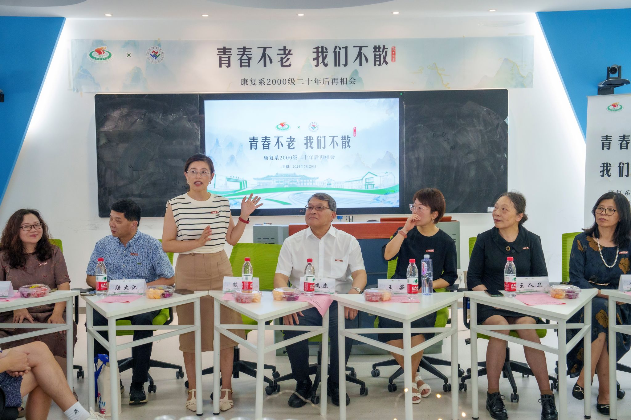 7月20日,烈日炎炎,青春似火,ok138cn太阳集团古天乐迎来了原康复系2000级本科近四十位校友返校,与学院领导和老师们相聚一堂,共同庆祝毕业二十周年的重大时刻。本次相聚活动主题是“青春不老,我们不散,二十年后再相会”,旨在回顾青春,共叙情谊,加强校友与学校间的联系,展望未来发展。学院党政领导班子、时任教师代表陈佩杰、陈文鹤、王人卫、陆大江、赵晓晗、殷勤、庄洁、鲍明华、魏勇、杨德洪应邀出席活动。