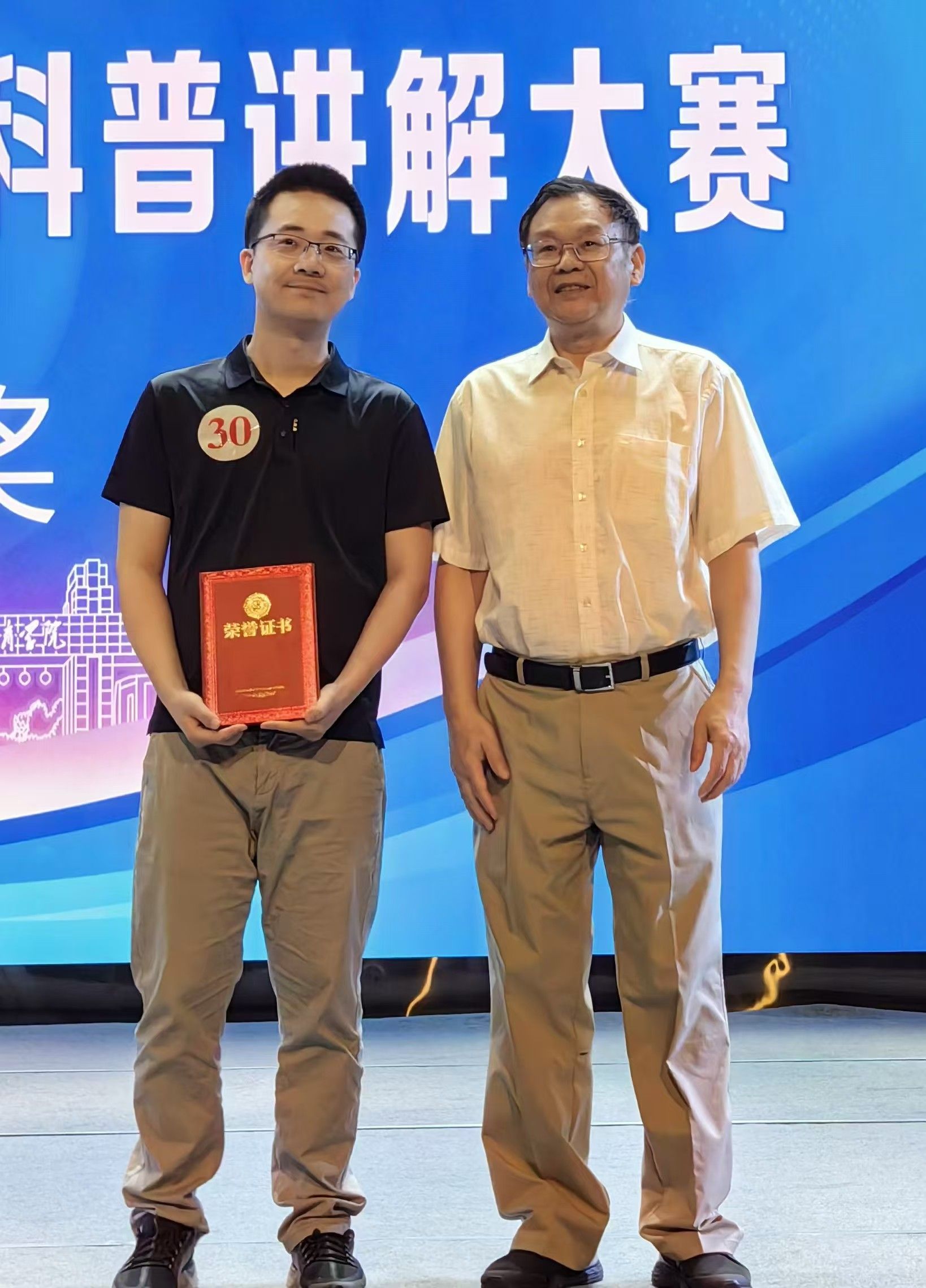我校教师谢树讲解的题目为:《科学运动,缓解膝关节疼痛与弹响》,通过分享自己在运动康复中的实践经验,直奔主题,主要介绍了膝关节弹响、膝关节力线问题以及股四头肌内外侧不平衡的问题,并且通过演示几个针对这些问题的运动康复动作,使讲解内容直观易懂、重点突出。最终收获二等奖,荣获了“全国体育系统十佳科普讲解员”称号。