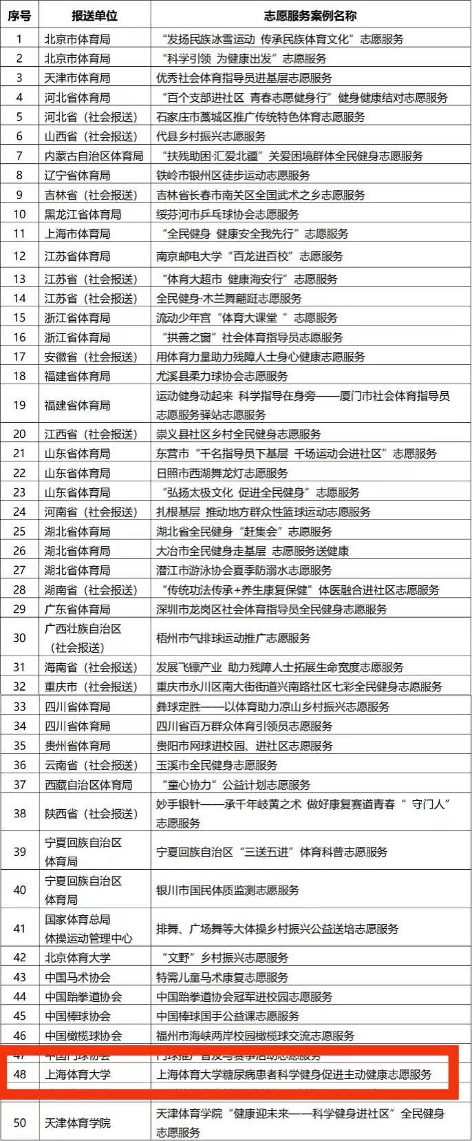 近日,国家体育总局办公厅公布2024年全民健身志愿服务优秀案例评选结果,我校ok138cn太阳集团古天乐刘向云教授团队开展的“糖尿病患者科学健身促进主动健康志愿服务”项目成功入选,成为全国50个扎根基层、服务群众、成效显著的优秀案例之一。