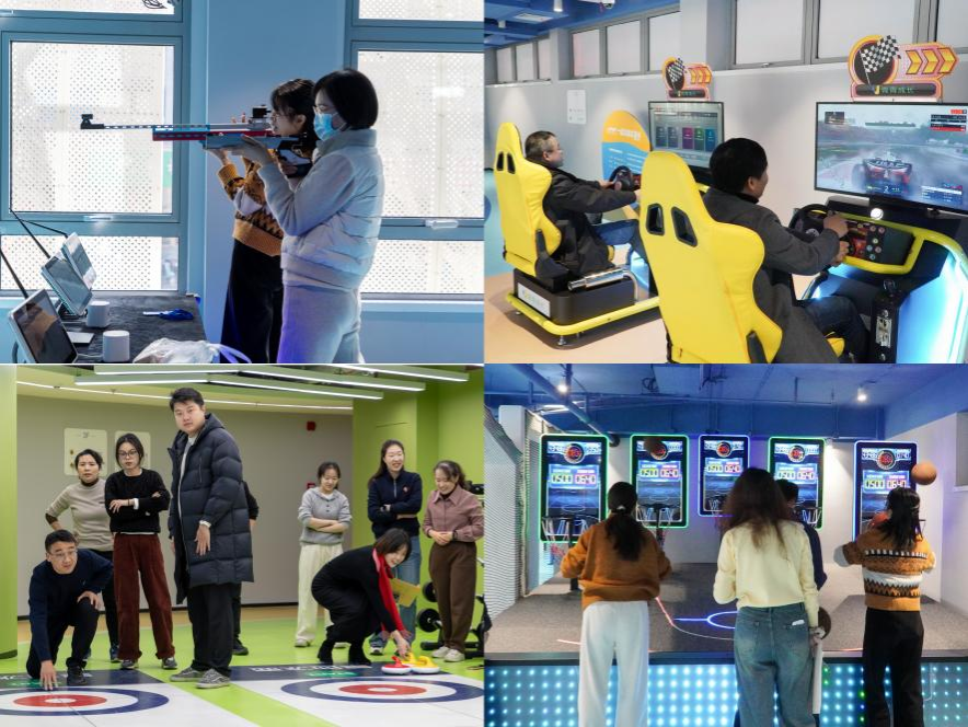 会前,运康学院在上海青少年健康促进中心体验馆二层还开展了素质拓展活动,现场设有冰壶“队”战等团队活动项目,以及飞盘、射击、篮球三个个人活动项目,学院的全体教职工饶有兴致地参与其中,在欢声笑语中增进了彼此间的交流,也为本年度的工作画上了一个圆满的句号。