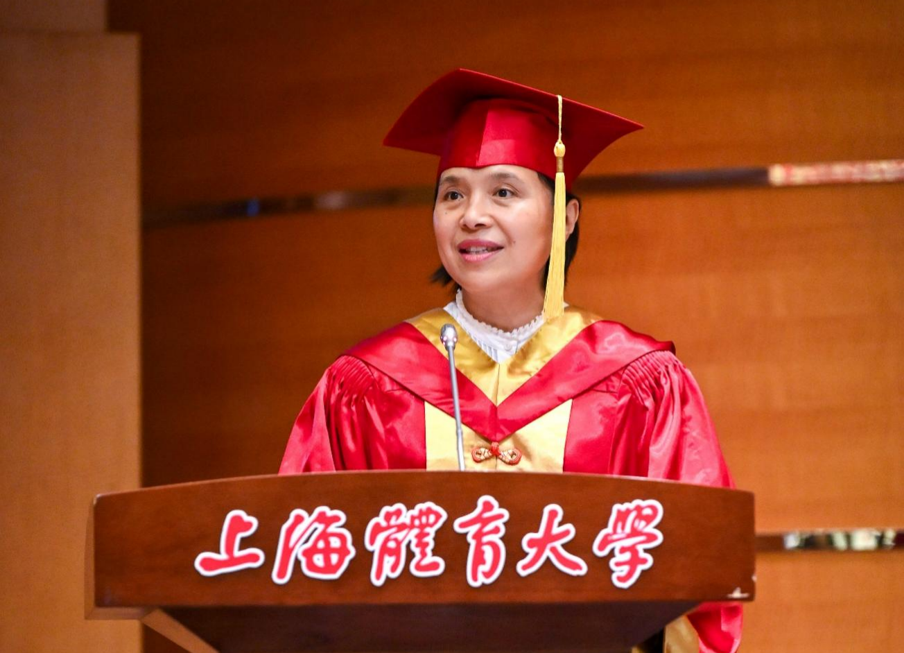 毛丽娟校长向圆满完成学业的毕业生致以热烈祝贺。她与同学们共同回顾了这段意义非凡的求学旅程:亲历学校更名大学的荣耀时刻,见证建校七十周年的辉煌庆典;在解剖室、实训室中探索运动健康奥秘,于学术科研与社会实践中淬炼本领、贡献力量,共同书写了学院的璀璨篇章。并对毕业生们提出了三点希望,第一,要保持终身学习,拥抱跨界,在“大健康”理念深入、AI赋能的时代,保持开放,拓宽边界,做学习者和创新者。第二,要勇担责任,服务社会,秉持“科学报国、兴体为民”使命,投身健康科普、全民健身,助力“健康中国”建设。第三,要永葆热爱,坚定前行,以热爱为动力,克服困难,在运动健康领域笃行致远。