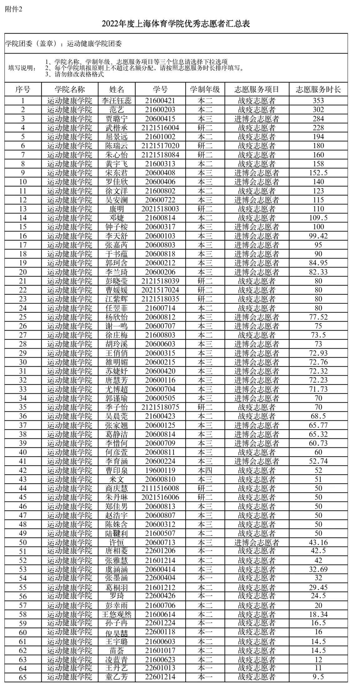 本次评选根据学生自主申请,填写参与2022年大上海保卫战、2022-2023学年第一学期校园疫情防控、第五届中国国际进口博览会的志愿服务时长,结合各项评选条件和日常参与志愿服务等综合表现情况,本着“优中选优”的原则,经过逐一审核、通盘考虑、慎重研究,现对学院拟评选名单进行公示。