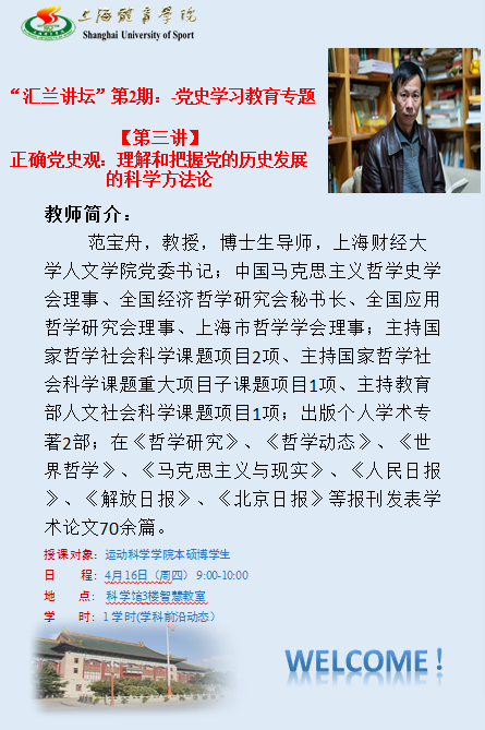 范宝舟,教授,博士生导师,上海财经大学人文学院党委书记;中国马克思主义哲学史学会理事、全国经济哲学研究会秘书长、全国应用哲学研究会理事、上海市哲学学会理事;主持国家哲学社会科学课题项目2项、主持国家哲学社会科学课题重大项目子课题项目1项、主持教育部人文社会科学课题项目1项;出版个人学术专著2部;在《哲学研究》、《哲学动态》、《世界哲学》、《马克思主义与现实》、《人民日报》、《解放日报》、《北京日报》等报刊发表学术论文70余篇。