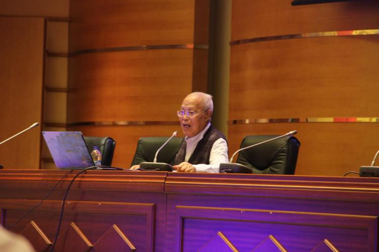 金季春教授进行了主题为《怀念张先生,期盼后来人》的精彩报告,他先是为大家讲述了张汇兰先生的教学要求——忠诚、诚信,笨鸟先飞、勤能补拙,厚积薄发,和大家共同探讨运动人体科学的现状、问题和背景,希望运科师生能在已经打好了人才、资源和知识等的基础上蓄势待发,厚积薄发。金季春教授提出在夯实让中国人民强起来的基础上努力作为的要求。最后他讲道:“二十世纪是生命科学世纪,生命科学的皇冠是人体科学,皇冠上的明珠是人体健康科学!”