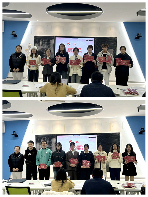 在决议公布后,学院党委副书记严芳为16位按期转正的党员颁发了《政治生日贺卡》和学习纪念品,送上了党组织的温暖和祝福。