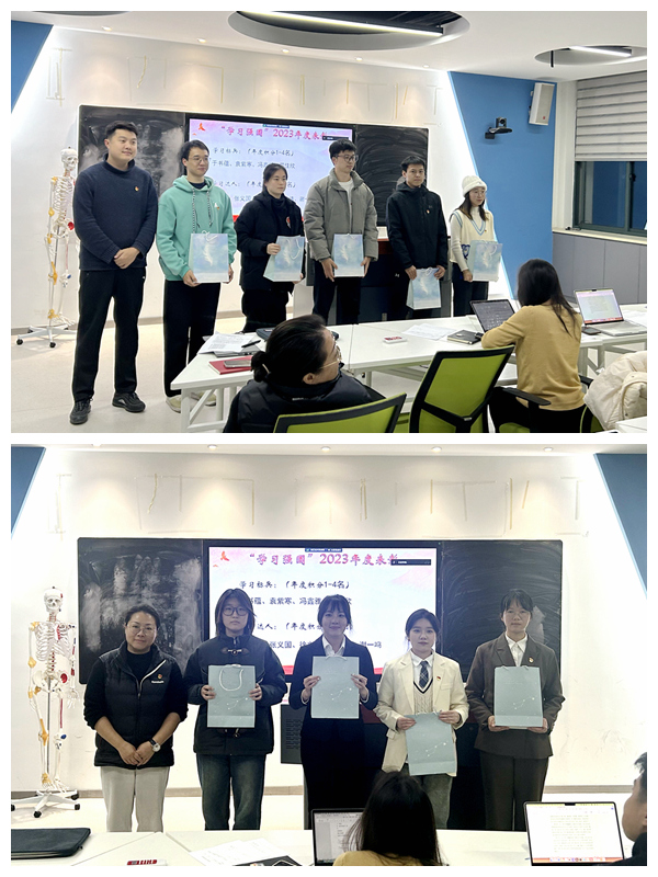在监票、计票期间,支部书记雷越同志对支部在2023年度“学习强国”的日常学习情况做了总结,并表彰了支部在2023年度学习积分前10名的党员同志。学院党委副书记严芳、党支部支委委员张烜诚分别为受到表彰的同志颁发了证书和纪念品,同时也鼓励大家积极运用好“学习强国”这个学习平台,不断增强学习理论的自觉性和主动性,努力提高自身的政治素质和思想水平,以奋发向上、积极作为的精神风貌,投入到各项学习与工作中。