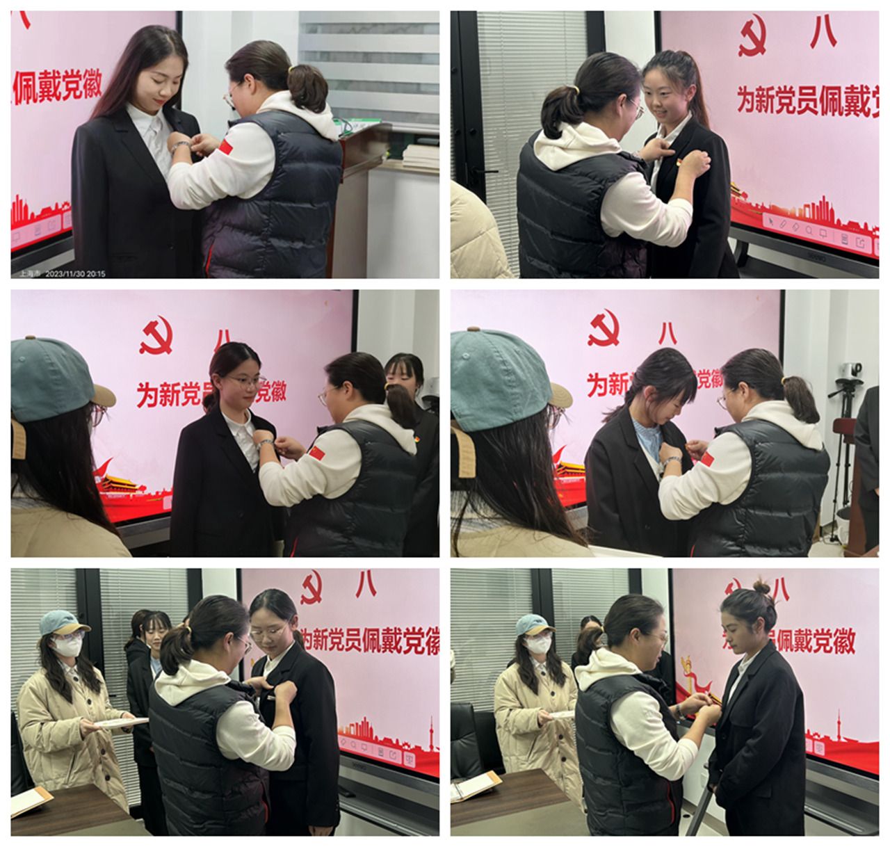 大会决议公布后,学院党委副书记严芳同志为六位新党员佩戴党员徽章,并赠送学习纪念品。随后,新党员同志逐个进行表态发言,向组织诉说了自己激动的心情,对党组织的培养与认可表达了真挚的感谢。大家也纷纷表示,在今后的学习、生活和工作中将按照党员标准严格要求自己,积极发挥学生党员模范带头作用,绝不辜负党组织的信任和培养。