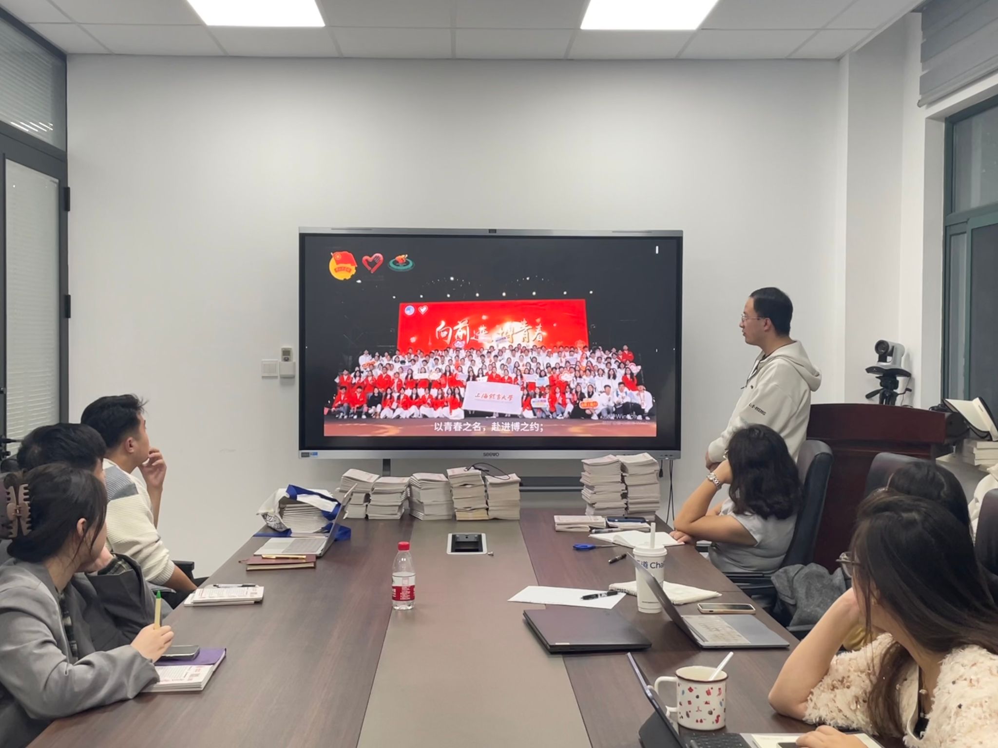 紧接着,活动通过一组图片和视频,展示了近几届上体“小叶子”在服务进博会过程中展现出的风采。每一届进博会成功举办的背后,都离不开志愿者“小叶子”们的辛勤付出,他们用最美的微笑、最热忱的服务,展现了当代青年学子的青春风采,传承着志愿服务的精神。