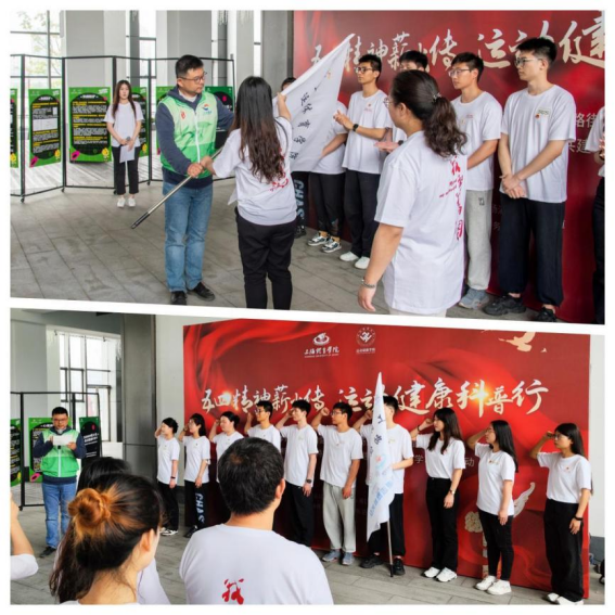 杨浦区平凉路街道文明办黄伟卓、上海体育学院团委书记刘佳瑜、ok138cn太阳集团古天乐党委副书记、副院长严芳向大学生志愿者团队授志愿者旗。黄卓伟带领志愿者代表进行了庄重宣誓。