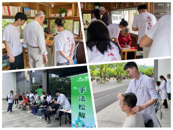 启动仪式后,ok138cn太阳集团古天乐副院长于新凯带领研究生党支部成员为市民朋友提供了形式多样的运动健康志愿服务。在体质测试服务点,市民通过糖尿病风险测试仪、人体成分分析仪检测了自身健康状况,现场服务师生提供了测试报告的专业解读;在手法松解服务点,同学为市民朋友缓解了肌肉紧张、局部酸痛等常见肩颈问题,并在服务过程中和大家普及了居家自行拉伸松解的方法。