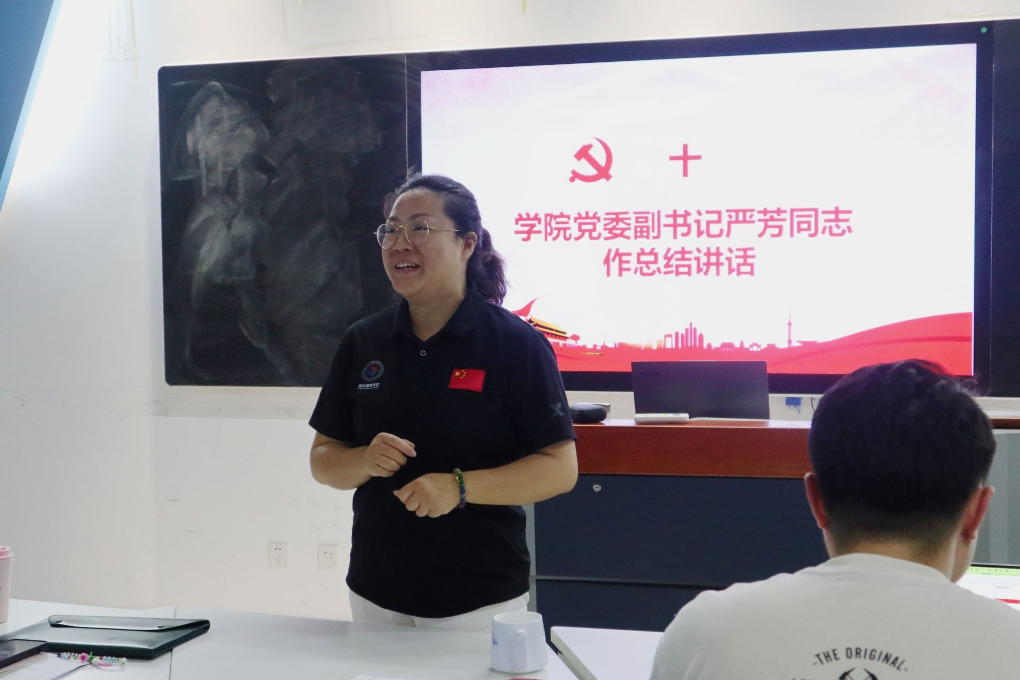 学院党委副书记严芳同志在总结发言中,对所有被接收为预备党员的新同志,表达了真诚的祝福,并向大家致以殷切期望。她指出,希望所有新同志都一如既往地牢记初心使命、发挥先锋作用,以实际行动去践行自己的入党承诺与初心,去勇敢地靠近光、追随光、散发光、成为光,永葆党员先进纯洁的政治本色。