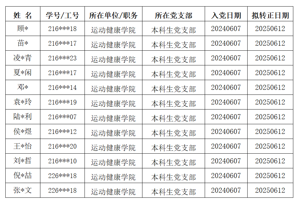 经过党组织的进一步教育和考察,以上12位中共预备党员基本符合正式党员条件,准备转为正式党员,特此公示。公示期为七天(2025年6月4日—2025年6月10日),各单位或个人如有意见,可通过来电、来访、来函等形式反映。