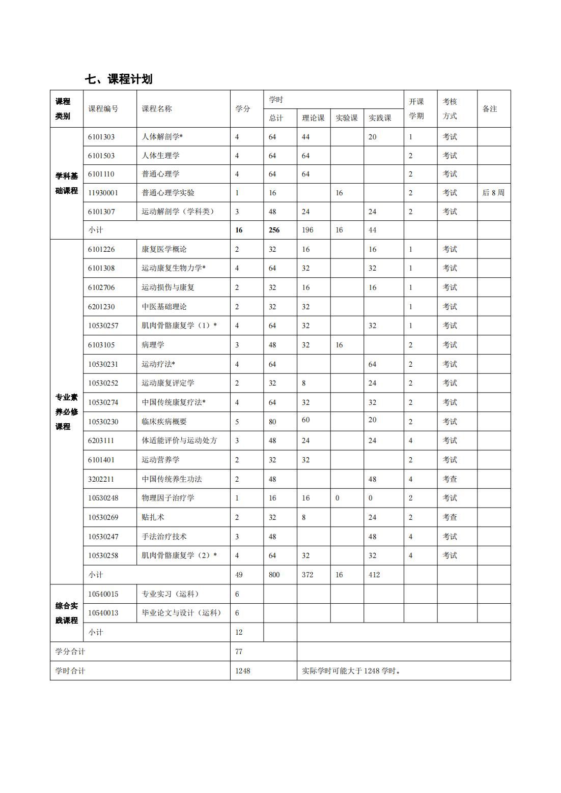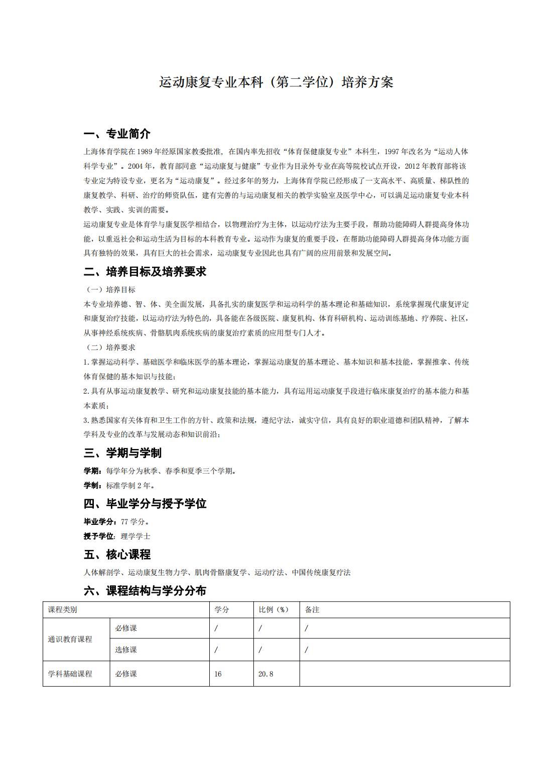 运动康复(第二学士学位)培养方案