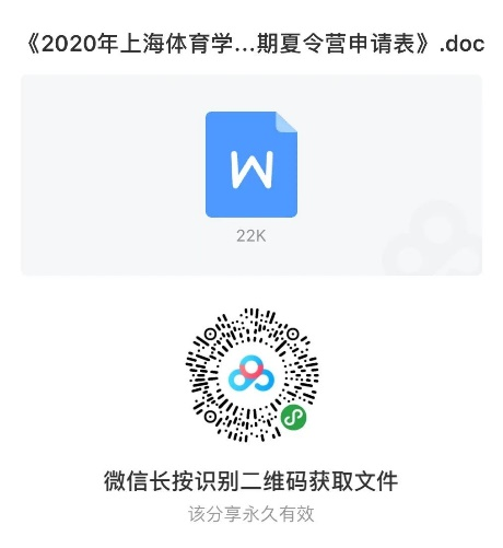 ▶《2020年上海体育学院运动科学学院优秀本科生暑期夏令营申请表》(扫描下方二维码获得);