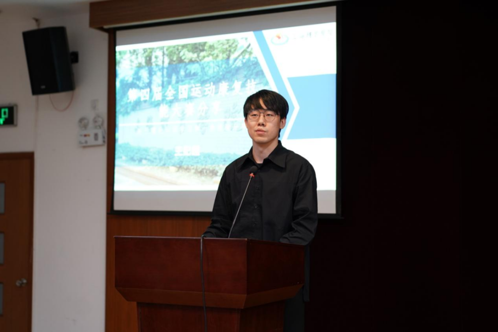 随后,徐奕来同学为我们分享了如何提高肌骨实操的能力。通过举例物理治疗中的一些特殊检查,指出掌握理论知识是学好肌骨实操的基础,打好基础后及时复习也是重要的一环,要在重在平时,反复练习,注意细节,不要拖到期末临时突击。他还鼓励有能力有时间的同学去实习巩固所学知识与实操技术,学习经验,提升沟通能力等。并且表示自身是通过在运动康复行业的实习,探索到了自己是真正热爱运动康复专业。最后,他进行了实习时的病例分享,通过所学理论知识以及实习经验,为患者制定出初步的治疗方案,并进行了再评估和进一步治疗方案的制定,成功地完成了患者的治疗目标。