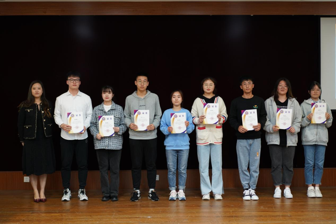 (汤含雨老师为志愿者代表颁发志愿者证书)