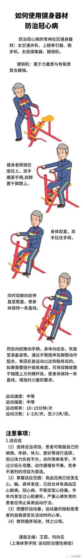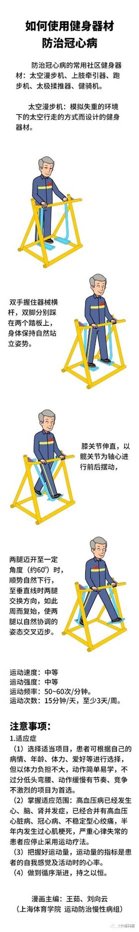 冠心病不适合剧烈的运动,因此我们为大家推荐了一些较为舒缓的健身器材。这些运动可以促进血液循环,提高心脏机能,有效改善心脏缺血、缺氧的状况,减少胸闷、心悸、头晕等症状的出现。